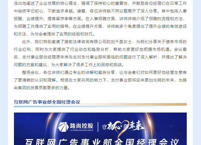 > 守初心 創未來| 路尚控股集團各事業部經理會議圓滿落幕